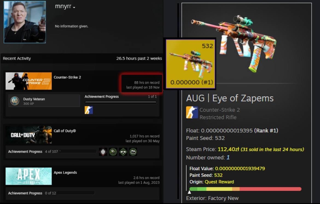 Отметим, что флоат скина — 0.00000000019395.