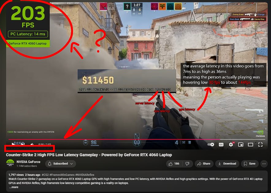 По словам deana, в NVIDIA не знала, что в строке сборки CS2 можно вычислять падения фреймрейта, которые не отображались в счётчике на видео.