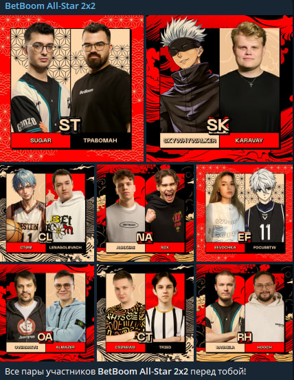 Организаторы BetBoom All-Star 2×2 в Telegram-канале представили список участников турнира по Counter-Strike 2.